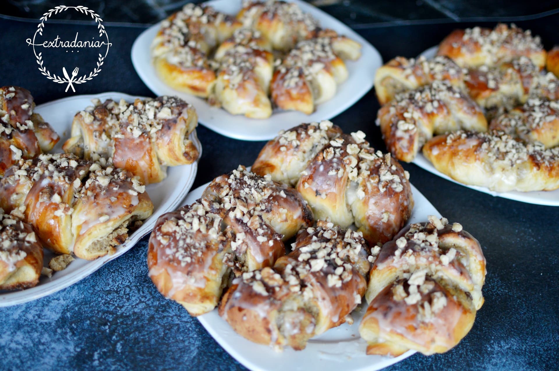 Upieczone rogaliki posmarować lukrem i posypać posiekanymi orzechami.