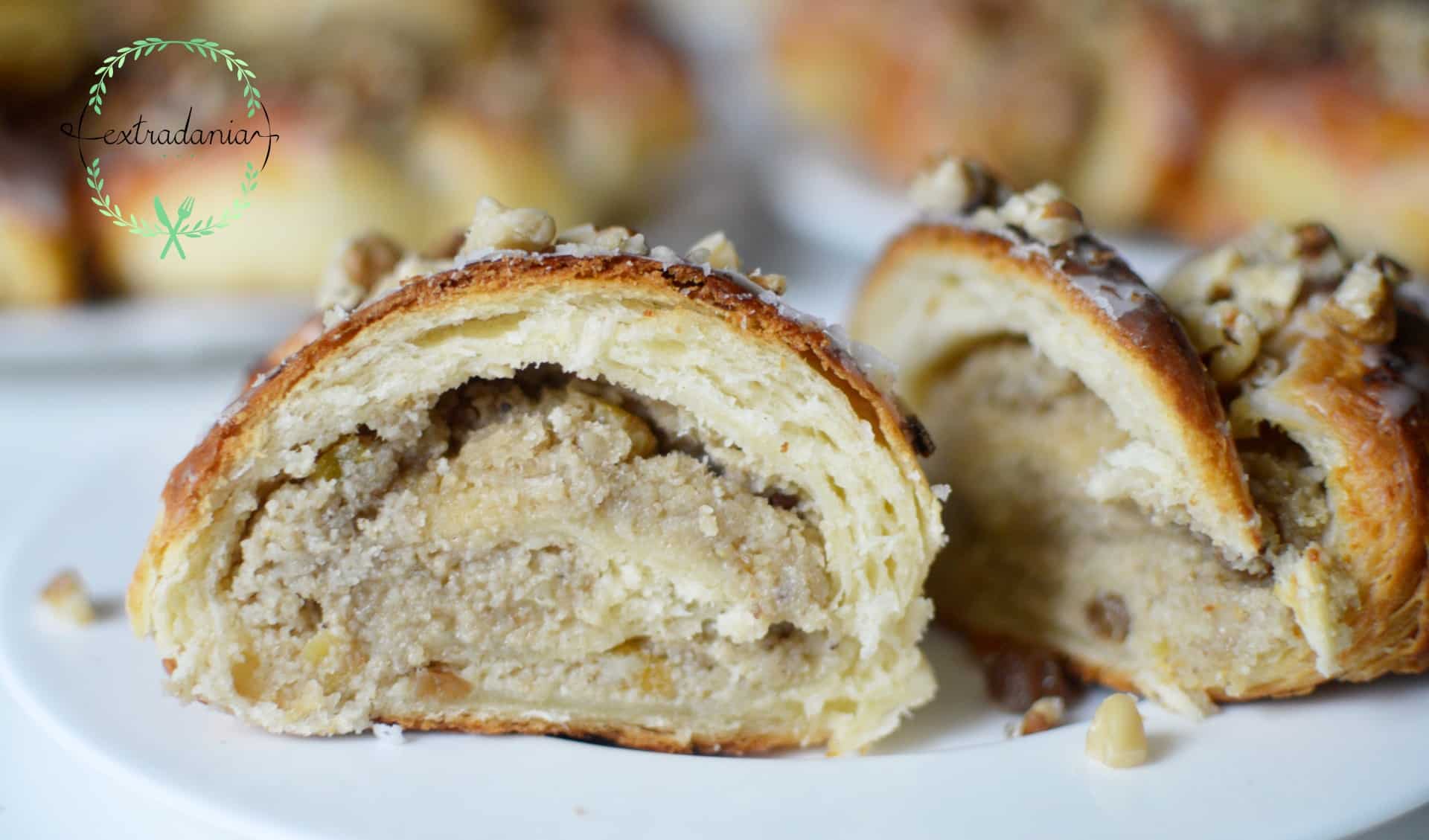 Rogale marcińskie lub też świętomarcińskie to rogale z ciasta półfrancuskiego, bogato nadziane białym makiem, orzechami i marcepanem. Tradycyjnie przygotowuje się je w Poznaniu i w Wielkopolsce 11 listopada z okazji Dnia Świętego Marcina. Na blogu już wcześniej pojawił się przepis na rogale, które w nadzieniu zawierają okruchy biszkoptowe (link do przepisu tu) i porcja jest mniejsza. W tym przepisie rogaliki rogaliki są robione z podwójnej porcji, nie zawierają okruchów i są bardziej na bogato 😉 z dużą ilością skórki pomarańczowej, rodzynek i marcepanu. Oba przepisy są godne polecenia i wypróbowania 😉
